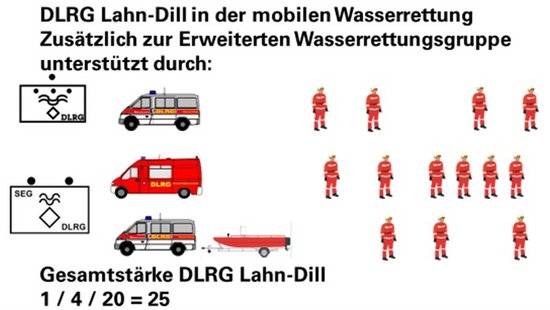Im Rahmen des Katastrophenschutzes des Landes Hessen stellt die DLRG Lahn-Dill eine „Erweiterte Wasserrettungsgruppe“.
